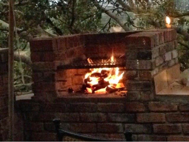 We cuddled inside the warm lodge. And looked at our fire through the glass. Shame my poor hubby was braaing in the rain. He seemed to enjoy it a lot.